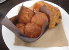 In LA, a town where looks are everything, some of the best restaurants are actually housed in generic surroundings. Take Hungry Cat, a wonderful seafood restaurant, which is located in a non-descript corner complex of chain stores and apartments. In spite of this mall setting, the restaurant has a loyal following and serves up some of the best fish in town. While Suzanne Goin, of Lucques, A.O.C., and Tavern fame, is the co-owner, it is her husband, chef David Lentz’s, show, and he wows with East Coast-inspired dishes. For brunch, start of with a basket of fresh-baked pastries, including Pain au Chocolat and Monkey Bread, a tasty treat reminiscent of two breakfast faves: cinnamon rolls and donuts. Next, an old brunch standby, Eggs Benedict, gets an oceanic boost with savory Crab Cakes replacing the usual English Muffin. The French-inspired Tweety’s Scramble is simply served with crème fraiche and refined fresh herbs . The insanely good breakfast potatoes, dotted with earthy garlic and rosemary, are some of L.A.’s finest. For a more lunch-like meal, the Fish & Chips and Pug Burger both offer superlative versions of popular pub fare. Plus, the fries are double-fried to perfection. Hair of the Dog, anyone? There are a handful of Bloody Mary options-- including the Maryland with an oyster garnish and rimmed with Maryland spice mix -- which feature tomatoes from the adjacent Sunday farmer’s market. The Blanche de Bruxelles--a citrus-y, Belgian white beer--is light enough for a midday quaff.