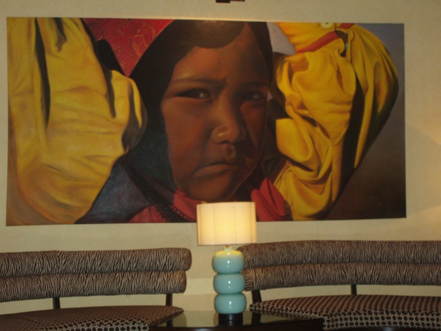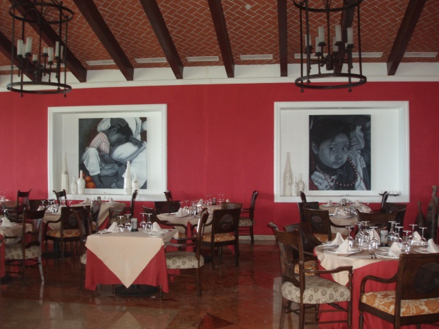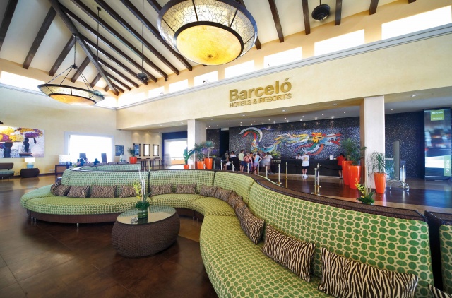 With 186 properties in 17 countries, family-owned Barceló has just introduced its Palace Deluxe brand with suites and junior suites, high-end spas, gourmet à la carte dining, and helpful Club Premium concierge lounges for check-ins, dinner reservations, free internet and snacks. The size of a small village, the Barceló complex consists of five hotels (2,749 rooms), 24 restaurants, 19 bars, five pools with Jacuzzi, an adult pool and spa, and two water parks. A gorgeous, 300-foot wide curving beachfront of palms and chaise lounges extends 1.25 miles with water sports (hobbie cats, kayaks) and diving facilities while a spacious malecon (walkway) acts as a perfect nexus for the pools and hotel rooms. Despite its overall size I found their high-end Barceló Premium Maya Deluxe Palace (2007) both intimate and elegant, with understated luxury, wonderful elevated public ocean views, and large colorful artwork.