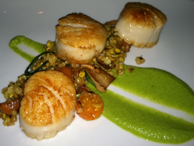On our morning walk around downtown Nantucket, we noticed a Bartlett Farm truck parked at Straight Wharf. Two bags full of fresh produce were being delivered to the restaurant. Witnessing a delivery of “farm-to-table” produce was a true delight and the stage was set for what was about to be experienced for dinner. Straight Wharf has always been one of our favorite restaurants on Nantucket. It’s casual, comfortable and sophisticated. The rustic exposed wood beams make for a warm and inviting atmosphere. The staff is always professional and courteous. The menu is well rounded and reflects the abundance of the local farming season. For starters we ordered the "Island Lettuces" salad, ($9) which was literally just picked from the farm. Nirvana! The crisp romaine lettuce was a brilliant shade of green. It was lightly dressed with buttermilk ranch house dressing. The shaved fennel and radish added a surprising layer of spice. The subtle garden herbs added a tremendously fresh and flavorful dimension.