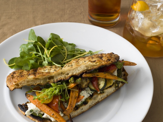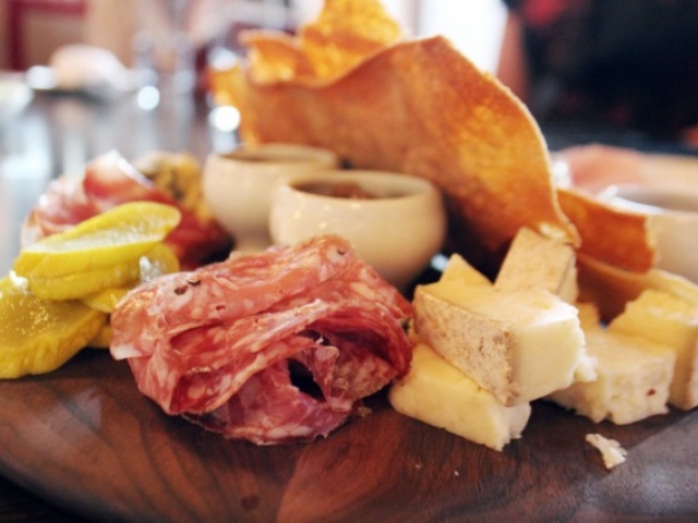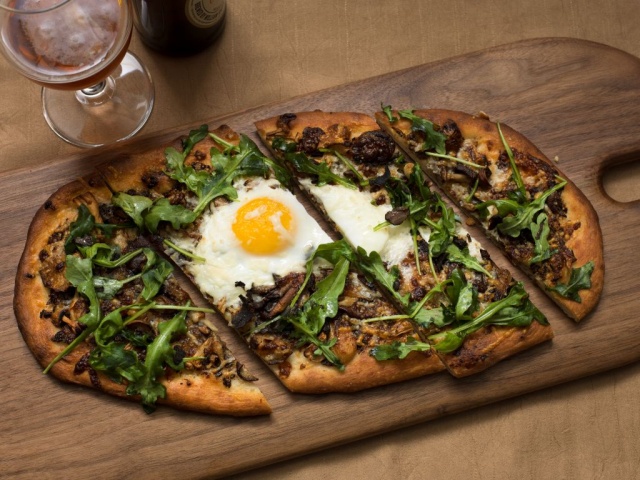 A focal point of the restaurant is a wood stone hearth oven, and a large marble chef’s work station. Here one can watch chefs sliding flatbreads, gratins, and entrees in and out of the gleaming oven while sipping an artisanal libation created by the crew of crafty mixologists. The lighting is low and cozy, with an amber glow setting the mood for a great meal.