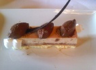 My dinner companion having looked up the address was waiting for me in a regal room lit with baccarat chandeliers. She was enjoying rose champagne which the waiter offered as soon as she sat down. I happily joined her. The wood paneled dining room is in its original place in the mansion. It is small enough to continue the feeling of being in a private home yet tables are comfortably placed so you can enjoy your privacy. The ever attentive staff appeared with amuse bouches offered by the chef to whet our appetite for the culinary delights that awaited us. There is an a la carte menu but it is more interesting and fun to have the tasting menu which is comprised of seven courses each paired with a wine of the chef’s selection. The portions are perfectly sized for a seven course presentation. In addition to being scrumptious they are beautifully placed on the porcelain plates making the meal a sensory as well as a culinary delight.