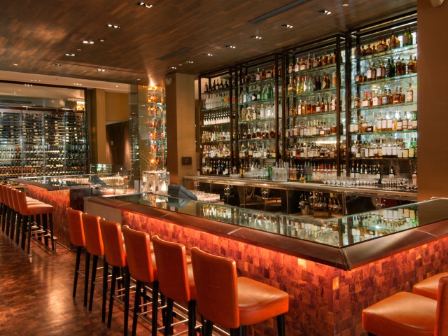Food holds stage right at the resort. The 250-seat Bourbon Steak, a Michael Mina Restaurant, just off the hotel’s main entrance, is like a bold, brassy jazz riff echoing off the super comfy but staid hotel lobby and lounge. Mina, a James Beard award-winning chef with restaurants in Las Vegas (Stripsteak/Mandalay, American Fish/Aria, Bellagio), among others, has brought a sleek, dark contemporary look with designer Tony Chi’s glass-box entry, 12-foot ceilings, mirrored walls, and rows of glassed-in wine cases that handsomely support their extensive 7,000-bottle Wine Spectator awarded wine list. After some delicious duck fat fries (instead of bread) and dips, we started with big eye tuna sashimi, American wagyu beef tartare, and superb local “heirloom” tomatoes from Boynton Beach accented with burrata cheese, basil and banyuls, a French dessert wine. Prime cuts include a 32 oz. porterhouse ($89), a 24 oz. Kansas City strip ($79), a 12 oz. skirt steak ($29), and an 8 oz. Japanese wagyu (kobe) New York strip that goes for a mere $175. Other American classics provided are: Maine lobster pot pie, glazed beef short rib, truffled mac & cheese, and paprika dusted onion rings. For dessert try their beignets with the Macallan 18-year butterscotch pudding and a very decent “banana” tarte tatin. Prices aren’t cheap, but food, service and ambiance outmatch many comparable South Beach eateries.