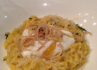 Appetizers were the Grilled Baby Octopus with Potato and Leeks - $18 and the Tartar Duo with Fennel and a Saffron Scented Rice Crisp - $18. Chef Erick Williams sent me out the most perfect Butternut Squash Risotto with a Poached Farm Egg on top that just melted into the rice when pierced - $15. Entrees included Grilled Scottish Salmon with Bok Choy and Mushrooms with a Mustard Glaze - $33 and the Duck Breast with Sweet Potato, Melted Leeks with a Huckleberry Reduction - $38. I barely had room for a few soothing spoons of sorbet.